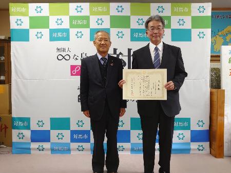 この度、対馬市役所にて感謝状授与をおこなわせていただきました。