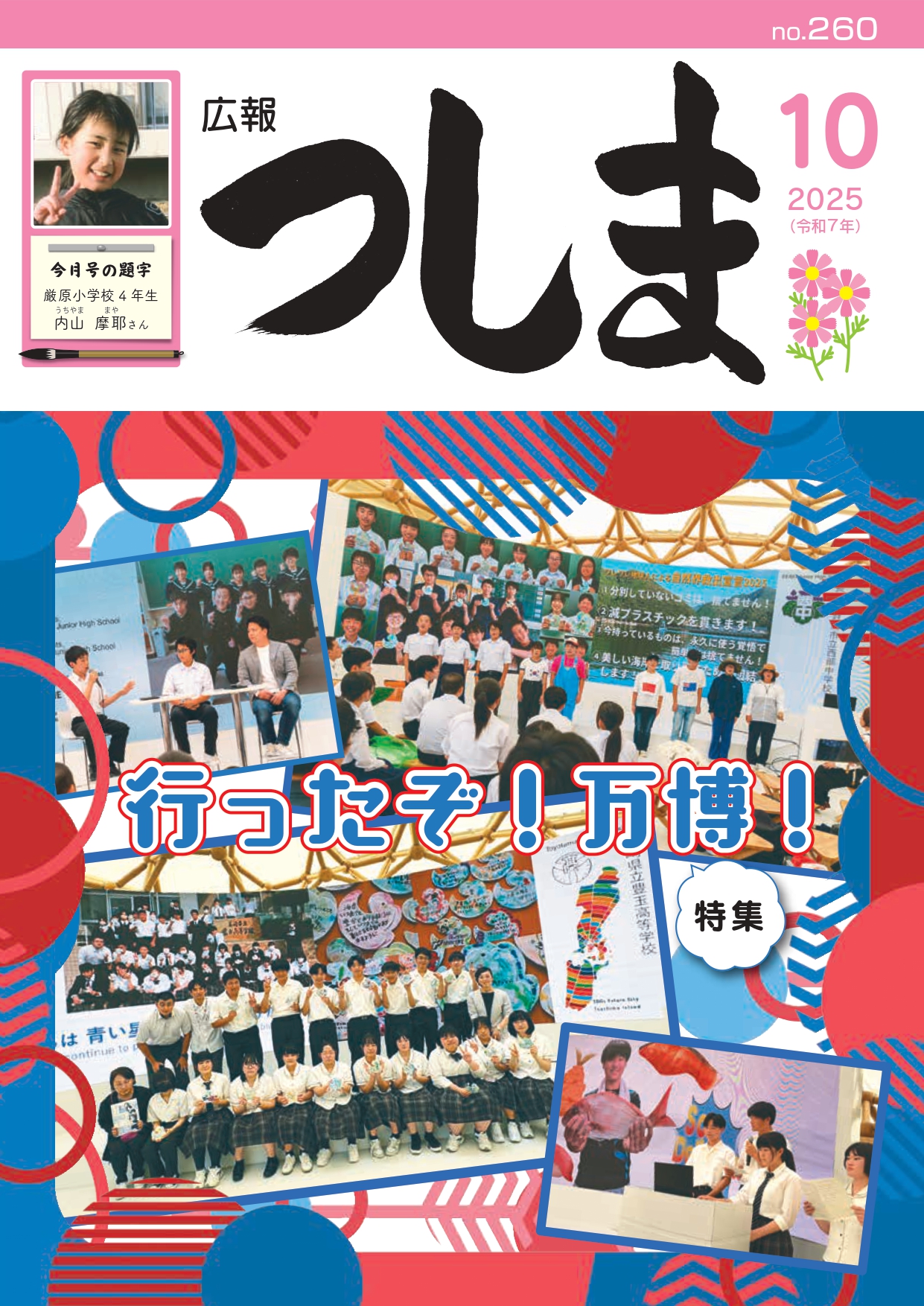 2025年10月 更新日:2025年10月15日 Contents 【2025年10月号】 広報つしま全ページ (PDFファイル: 5.2MB) まちかどウォッチング、みんなの広場 (PDFファイル: 889.3KB) 特集 (PDFファイル: 1.1MB) 市役所インフォメーション (PDFファイル: 1011.3KB) わがまち再発見 他 (PDFファイル: 913.0KB) 情報BOX (PDFファイル: 751.0KB) 福岡事務所レポート 他 (PDFファイル: 1.2MB) お誕生日おめでとう 他 (PDFファイル: 926.2KB) この記事に関するお問い合わせ先 総務課〒817-8510対馬市厳原町国分1441番地電話番号:0920-53-6111ファックス番号:0920-53-6112メールフォームからお問い合わせをする