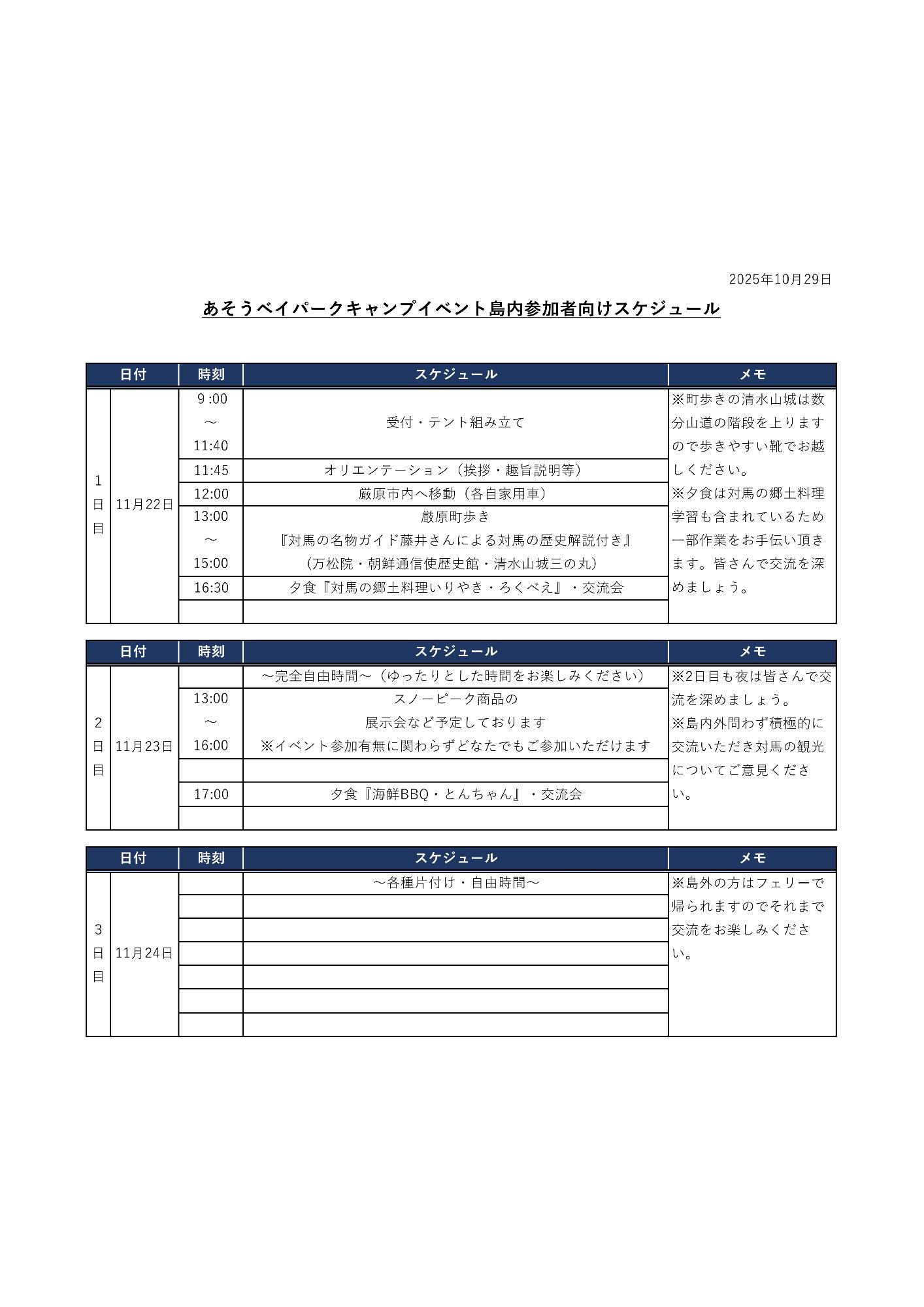 島外のベテランキャンパーにもご参加いただきますので、島内外のキャンプ仲間と交流を深めるチャンスです。