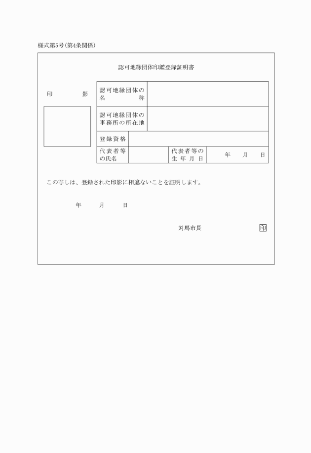 ○対馬市認可地縁団体の印鑑の登録及び証明に関する条例施行規則