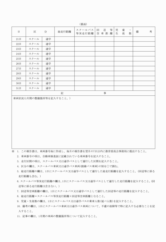 6 受託事業者は、スクールバスの運行及び管理に関する報告書(様式第3号)を教育長に提出しなければならない。